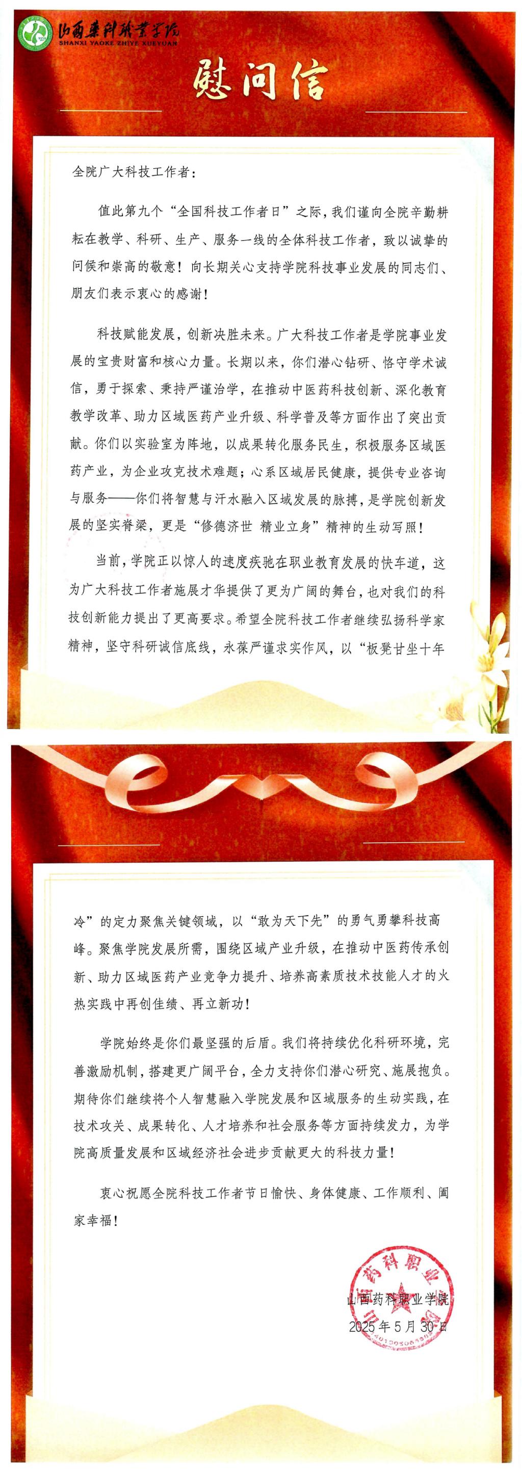 致全院广大科技工作者的慰问信-ks8凯发官方网站