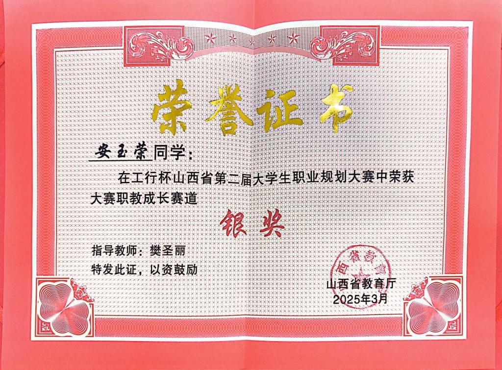 近日,山西省第二届大学生职业规划大赛总决赛在山西工程科技职业大学圆满落幕。我院中药系学生安玉荣凭借清晰的职业发展路径和扎实的专业实践能力脱颖而出,斩获成长赛道银奖,药学系学生马睿斋以精准的行业认知和创新的求职策略赢得评委一致认可,摘得就业赛道银奖。