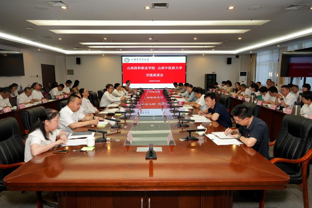 7月4日下午,学院党委书记张轩萍带领党委领导班子成员及全体部门、单位负责人,赴山西中医药大学学习交流。山西中医药大学党委书记李华荣,党委副书记、校长王宏伟,校领导乔军红、苗强、张桓虎及相关职能部门负责人参加座谈交流。