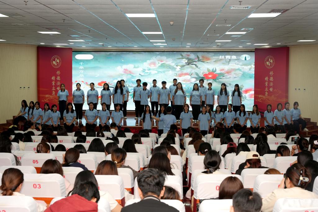 9月15日至21日为第28届全国推广普通话宣传周。为切实抓好国家通用语言文字推广普及工作,传承和弘扬中华民族优秀传统文化,激发广大师生爱国情怀,坚定文化自信,9月17日下午,学院在综合楼报告厅举办全国推广普通话宣传周活动之中华经典吟诵展示活动。学院党委委员、纪委书记庄东军出席活动。来自学院各系、部分学生社团共选送的11个节目参加展示,师生代表共300余人参加活动。