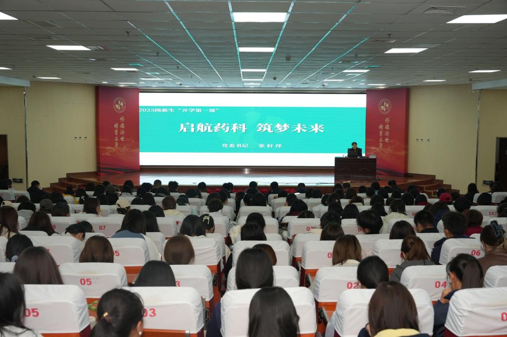10月11日下午,2025级新生教学第一周,学院党委书记张轩萍走进课堂、登上讲台,以“启航药科 筑梦未来”为题,为新生代表讲授“开学第一课”。