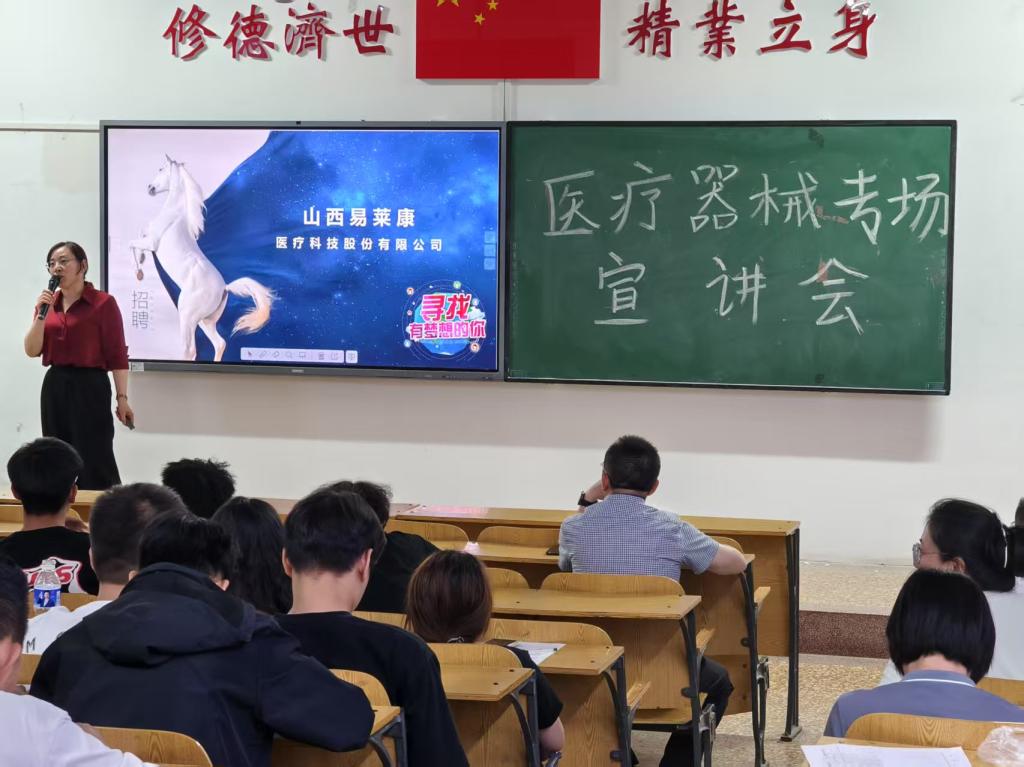 5月28日,山西易莱康医疗科技股份有限公司、太原市欣易得医疗设备有限公司、山西晋商药业集团、山西宏瑞医疗科技有限公司、山西华晋康商贸有限公司五家企业走进山西药科职业学院,为医疗器械系举办专场宣讲会,八十余名师生齐聚一堂,共探职业发展新机遇。
